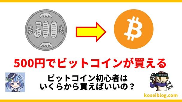 ビットコインの価格変更によってことなりますが、だいたい**500円**から購入することができます。 いきなり数万円を購入するよりも、まずは暗号資産(仮想通貨)を購入する事に慣れるため、少額の500円から始めてみましょう。